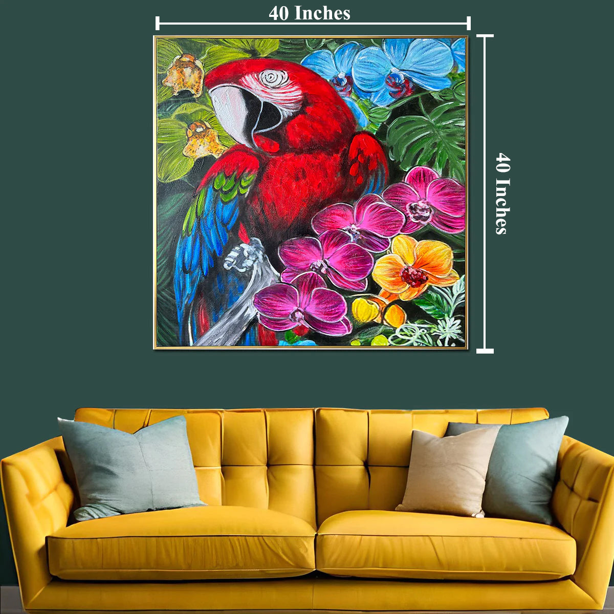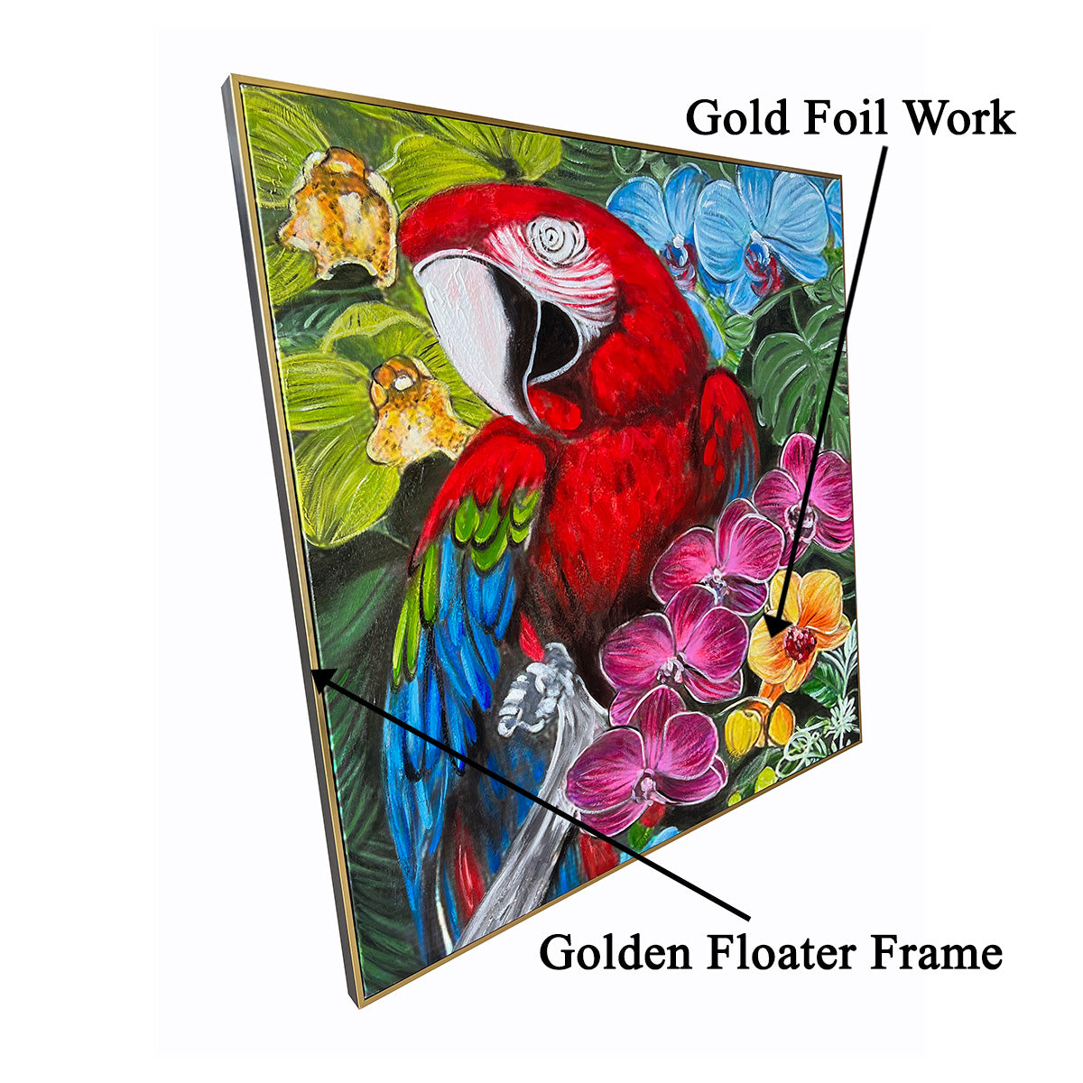 | Presenting our Garden of Dreams Handpainted Wall Painting, a mesmerizing framed wall paintings that will breathe life into your space! This captivating oil painting showcases a majestic parrot perched on a vibrant branch, exuding grace and charm. Adorned with a luxurious gold frame, it adds an aura of opulence to any room. Elevate your home decor with this stunning wall art painting that seamlessly combines elegance and nature's beauty. Discover the perfect balance of artistry and sophistication with our framed wall paintings. |