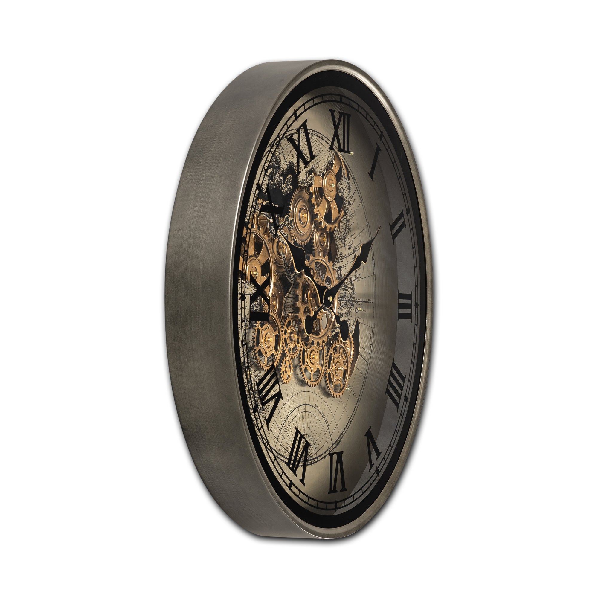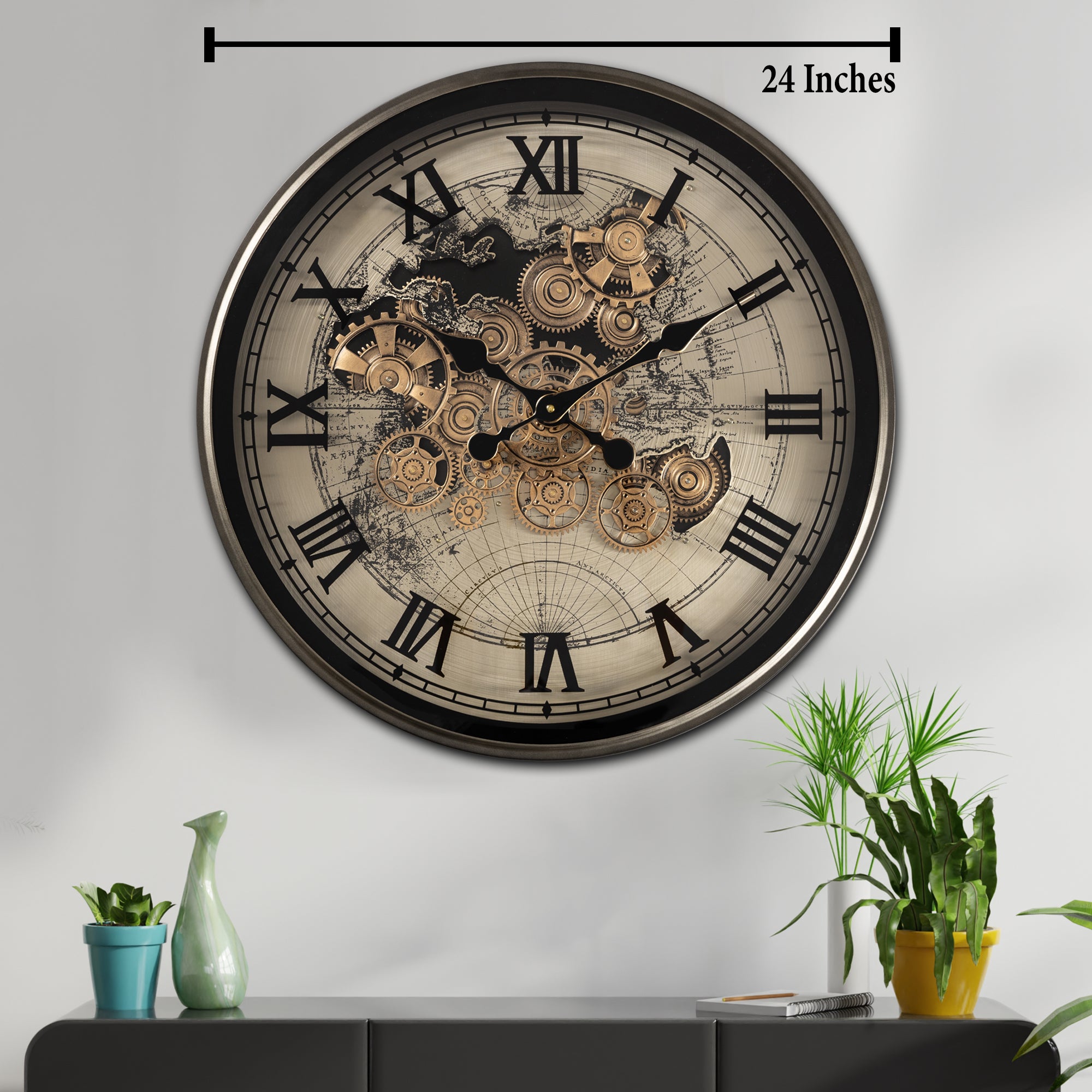 | The Phantom Dial wall clock is a perfect fusion of modern technology and classical design, making it a standout piece in any living room. This designer wall clock features a mesmerizing moving gear mechanism that adds a unique visual element to your home decoration items, while the large Roman numerals provide a timeless appeal. The sleek metallic finish ensures that this clock complements any decor style, from industrial chic to contemporary elegance. As both a functional timekeeper and a dynamic piece of art, Chrono Gears enhances the aesthetic of your living space, making it a must-have for anyone who values design and craftsmanship. |