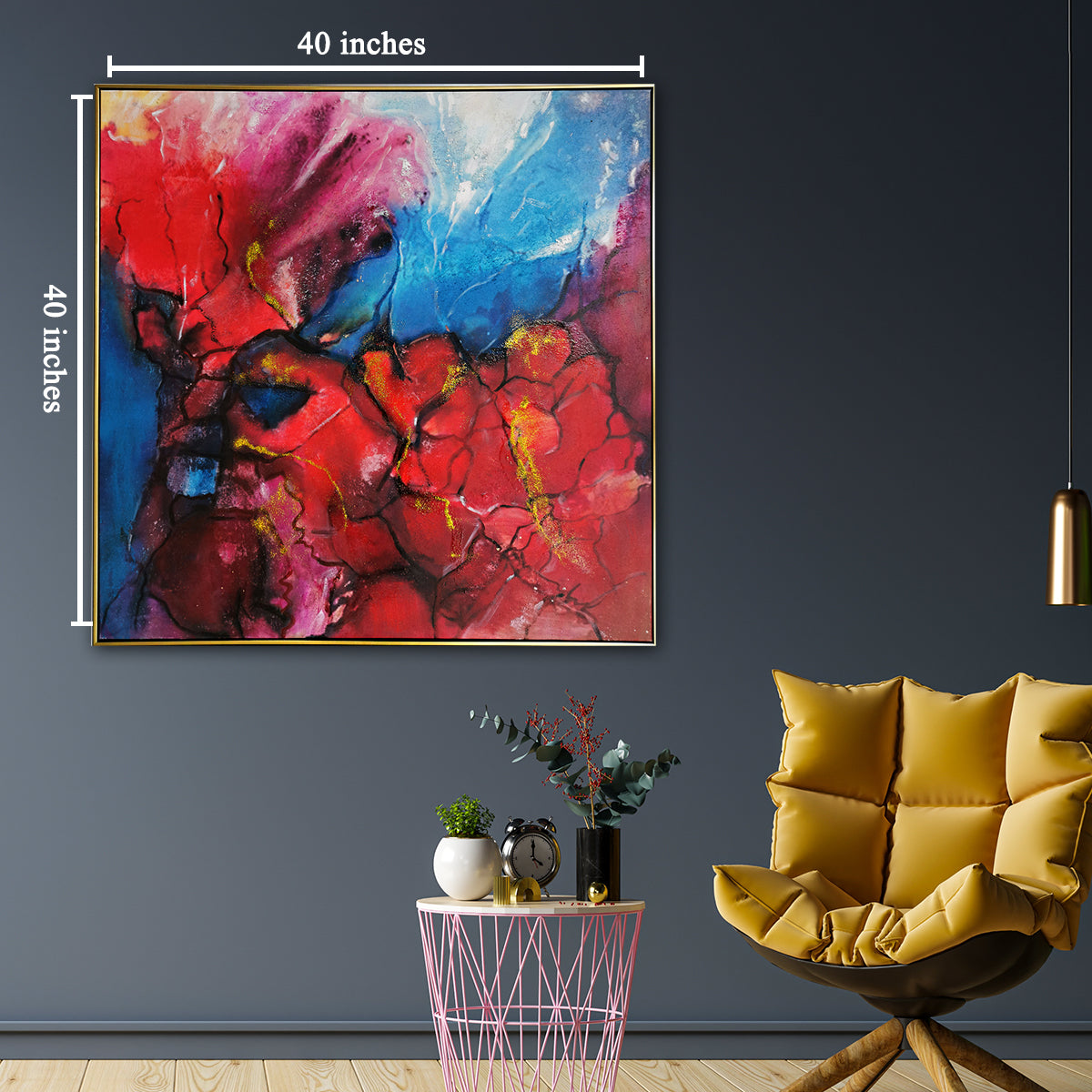 | Spruce up any wall in your bedroom with The Hues of Spring wall painting! This vibrant and charming abstract painting comes with a luxurious golden colour floater frame, perfect for adding a finishing touch to your wall. With its bright tones, it will bring life, personality and style to any room. It would make the perfect statement piece in any modern or traditional interior design theme. Shop now, and get the wall painting bedroom of your dreams - The Hues of Spring! |