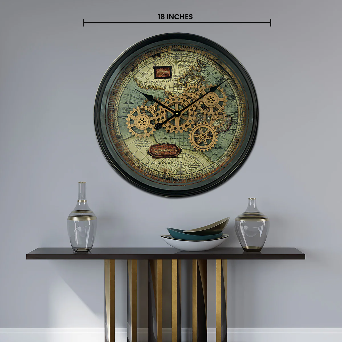 Sanjeev Sk Timeless Tradition Luxury Designer Wall Clock For Living Room With Moving Gear Mechanism Buy Wall Clock Online - Medium (Steel Body)